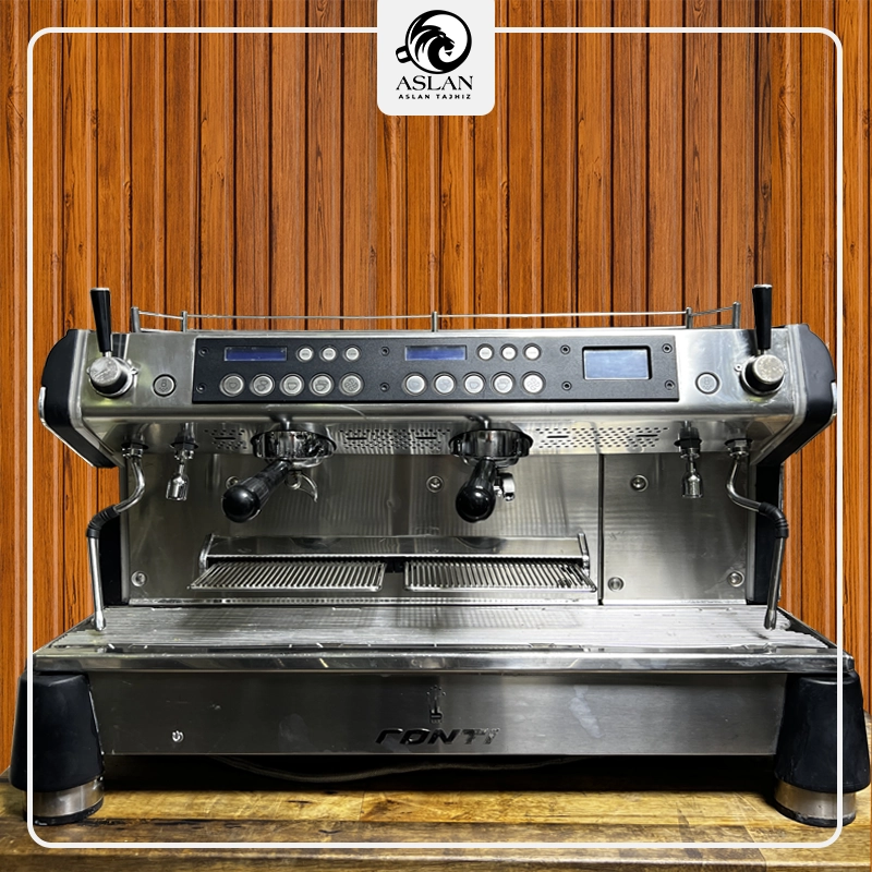 هر بویلر قهوه و گروه قهوه اسپرسوساز کنتی مدل مونت کارلو دوگروپ اتوماتیک، دمای خود را به‌دقت توسط سیستم PID کنترل می‌کنند و آب گرم‌شده از سیستم تبادل حرارتی